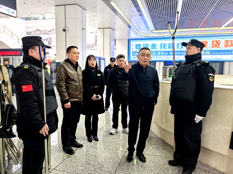 本网讯(通讯员 黄其友)1月24日下午,自贡市国资委党委副书记、主任邵军、党委委员、副主任易红、董志一行赶到自贡高铁站,对春节期间高铁站安保工作进行检查指导。