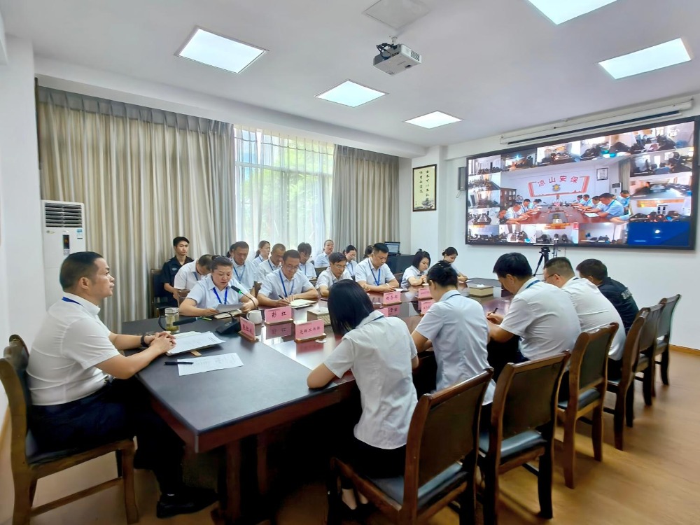 本网讯(凉山安保)为全面回顾总结上半年工作成效,分析研判当前形势,科学部署下半年工作任务,确保2025年度各项经营目标圆满完成,7月29日下午,凉山州安保公司召开2025年度上半年工作总结会。会议以视频形式召开,公司领导班子、中层管理人员、各部门员工岗人员及各保安服务大队大队长、教导员、副大队长、员工代表参加会议。
